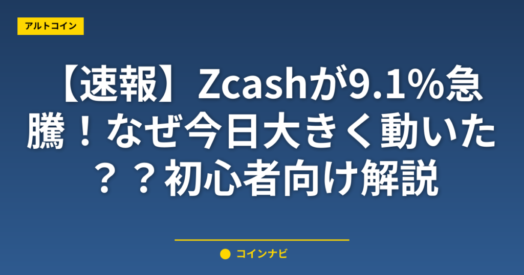 【速報】Zcashが9.1%急騰!なぜ今日大きく動いた?初心者向け解説